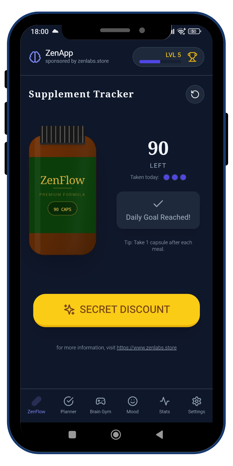 Quality is our standard. We strictly source the finest ingredients selected for their purity and absorption. ZenFlow™ contains only premium-grade compounds, ensuring you get the best in every serving.